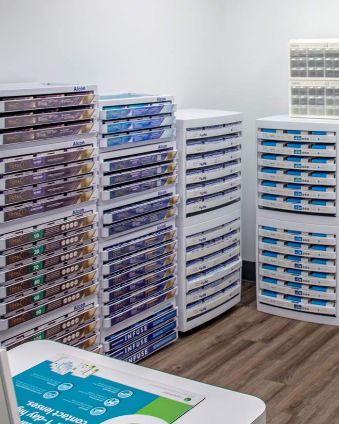 We carry a wide selection of contact lenses, including daily, biweekly, and monthly soft contact lenses, lenses for astigmatism and presbyopia, and myopia management contact lenses. We also have extensive experience in fitting specialty contact lenses for keratoconus or corneal irregularities, such as scleral, hybrid, and rigid gas permeable lenses.