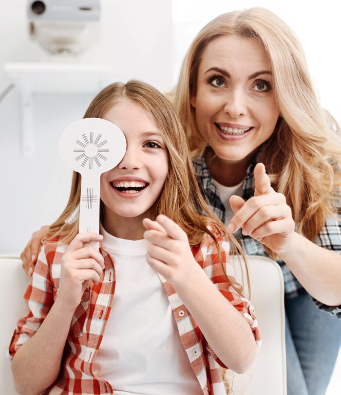 During a kid’s eye exam, we take extra care to make the experience relaxed and stress-free. Our pediatric eye doctors check for more than just blurry vision. We evaluate eye teaming, depth perception, tracking, focusing ability, and eye health.